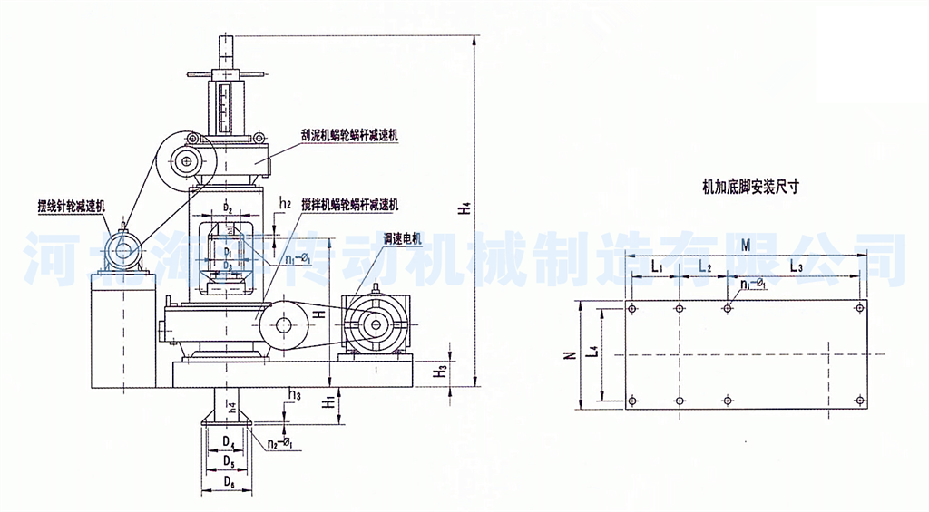 澄清池專用設備-刮泥機減速機/刮泥攪拌一體機選型特點:低速輸出傳動裝置、輸出扭矩大、噪音低、運行平穩、無泄漏,可配提升裝置(手動/電動),過載裝置。