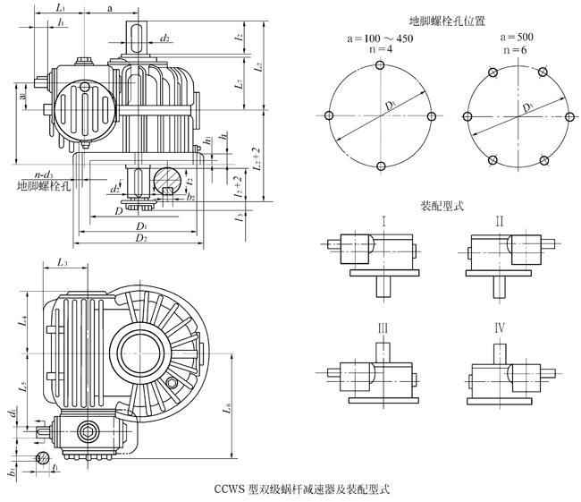 ZC1型雙級(jí)蝸桿及齒輪-蝸桿減速器(JB/T7008-1993)由兩類產(chǎn)品構(gòu)成,其中ZC1型雙級(jí)蝸桿減速器是由速比及規(guī)格不同的兩級(jí)圓弧圓柱蝸桿傳動(dòng)組成;齒輪—蝸桿減速器是由高速級(jí)為圓柱齒輪傳動(dòng)、低速級(jí)為圓弧圓柱蝸桿傳動(dòng)的兩級(jí)傳動(dòng)組成。按低速級(jí)蝸桿置向不同可分為:蝸桿下置式、蝸桿側(cè)置式、蝸桿上置式三種結(jié)構(gòu)形式。具有承載能力高、傳動(dòng)效率高、傳動(dòng)比大、結(jié)構(gòu)緊湊等特點(diǎn),主要適用于冶金、礦山、起重、運(yùn)輸、化工、建筑、建材、輕工等行業(yè)。