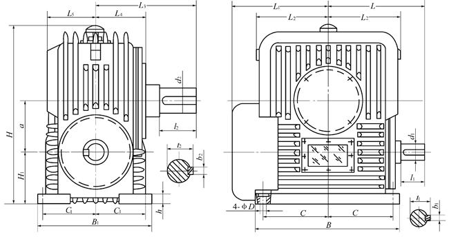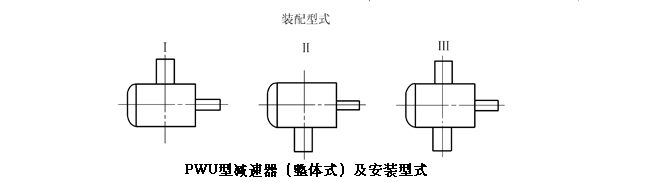 (1) PWU型—蝸桿在蝸輪之下平面二次包絡(luò)環(huán)面蝸桿減速機(jī); (2) PWO型—蝸桿在蝸輪之上平面二次包絡(luò)環(huán)面蝸桿減速機(jī); (3) PWS型—蝸桿在蝸輪之側(cè)平面二次