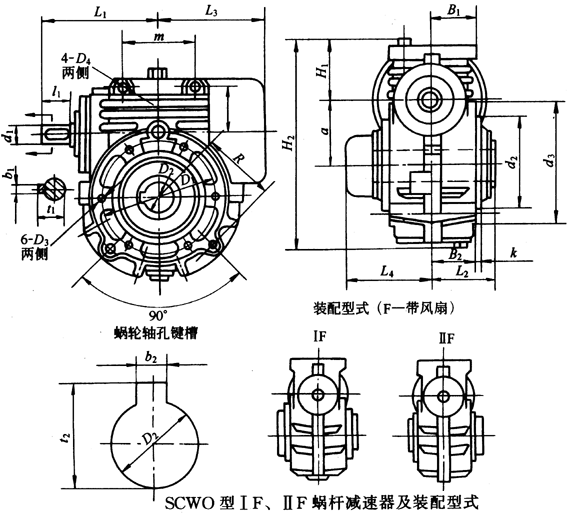 SCWO型ⅠF、ⅡF蝸桿減速器及裝配型式           /mm