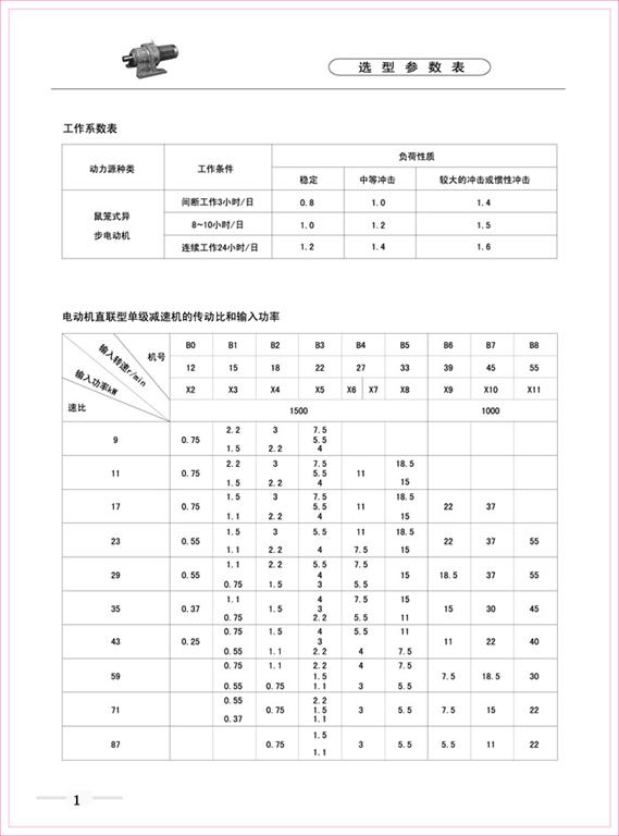 減速機|擺線針輪減速機-B、X系列擺線針輪減速機選型參數(shù)表-海洋傳動