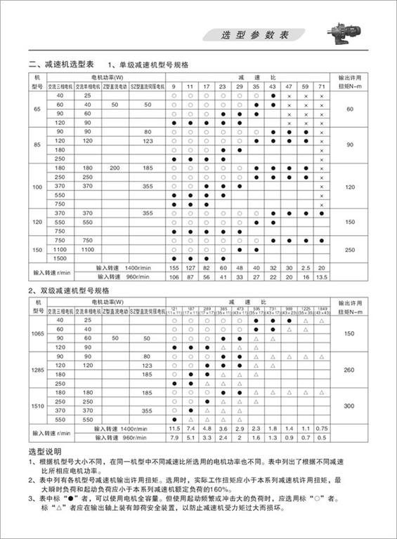 減速機選型條件參考