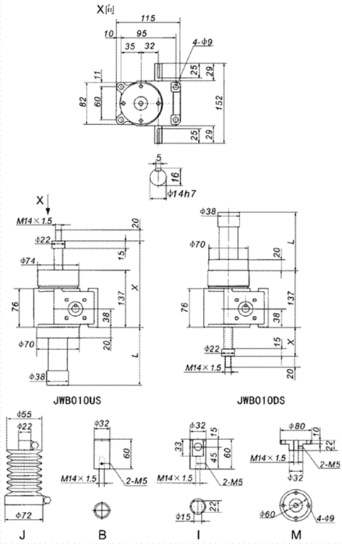 JWB010滾珠絲桿升降機外形尺寸: