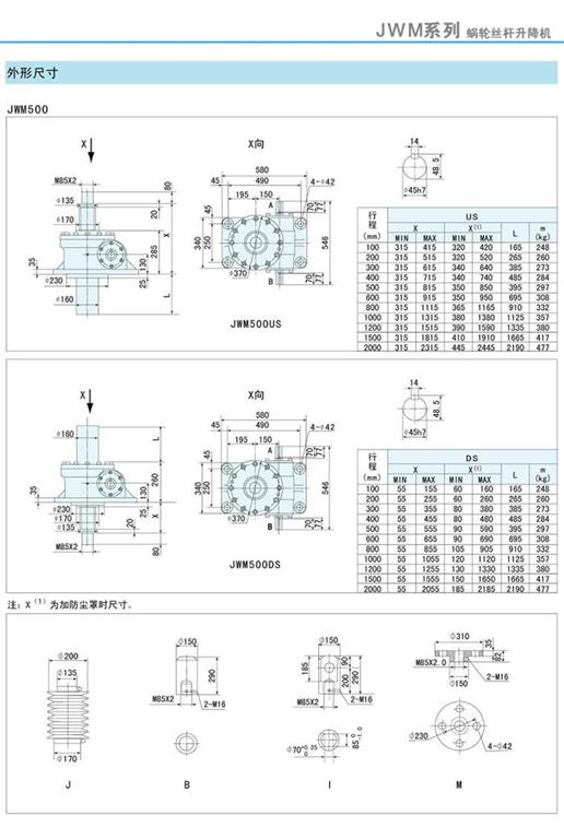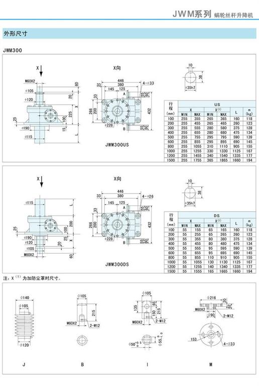 減速機|蝸輪絲桿升降機-JWM升降機300、500外形尺寸圖-海洋傳動