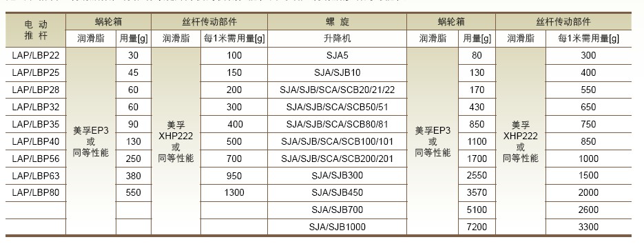 超出表格填入潤滑脂數(shù)值將影響螺旋升降機(jī)的機(jī)械性能,同時(shí)增加潤滑脂滲漏的可能性