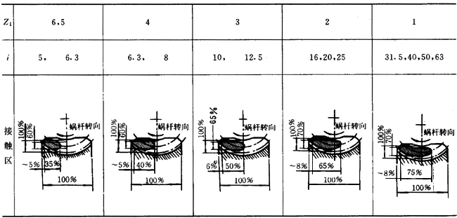 蝸輪齒面接觸區位置大小