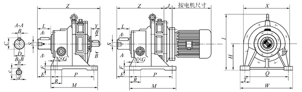 XWD擺線針輪減速機尺寸詳細說明