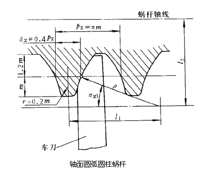 圓弧圓柱蝸桿減速機齒面是由蝸桿軸面內(nèi)一段凹圓弧繞蝸桿軸線作螺旋運動而形成的螺旋面,可以用凸圓弧車刀將前刃面置于蝸桿軸面內(nèi)車出螺旋面,圓弧圓柱蝸桿減速機一般采用成型刀具和成型砂輪制造,其和蝸輪接觸面積大,承載能力是普通蝸桿的1.5-2.5倍,潤滑性能大幅度提高,所以壽命也較普通蝸桿傳動延長很多