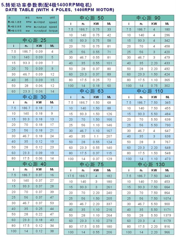 rv減速機(jī)轉(zhuǎn)矩功率參數(shù)表: