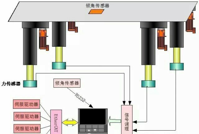 雷達(dá)天線車自動(dòng)調(diào)平系統(tǒng)主要由傳感器、調(diào)平控制系統(tǒng)、